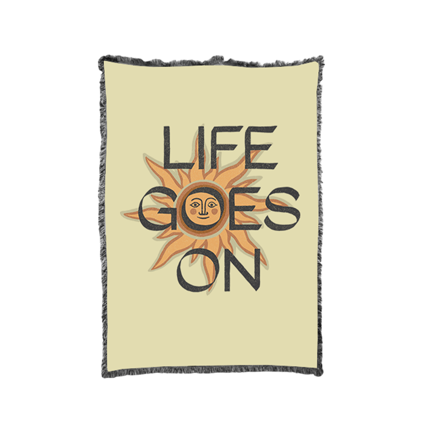 Picnic blanket with Sundial artwork and Life Goes On text print.Dimensions: 1.6m x 2m