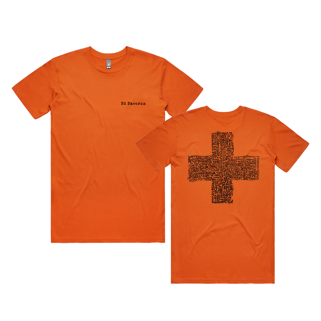 Celebrating the 10-year anniversary of PLUS with new exclusive merchandise. This unisex orange t-shirt features Ed Sheeran on the front and PLUS logo on the back.